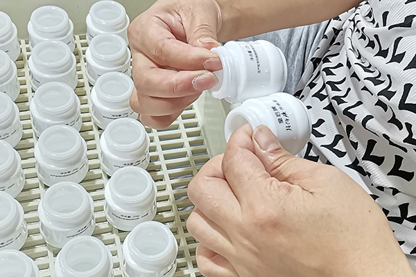 After molding, the bottles and jars are cleaned with a bottle-washing line.