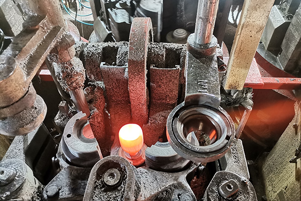 The ​press-and-blow process​​ is the most widely used manufacturing method, In this process, a ​metal plunger​ compresses the molten glass into a ​parison​ (preform) within a mold. The parison is then transferred to a ​blow mold​ and reheated to the optimal blowing temperature before ​compressed air injection​ forms it into the final shape.