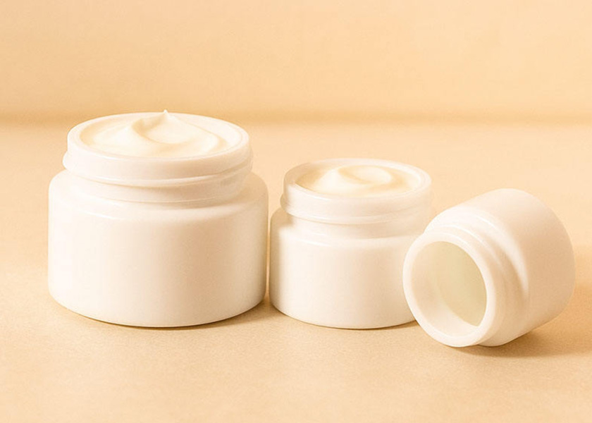Made of  SHULOPAL opal glass,  cosmetic packaging items such as cream jars, mask jars, lotion bottle, perfume bottle, toner bottle,  essential oil bottle, foam dispenser, nail polish bottle; and beverage pacakging such as alcoholic beverages, milk bottle.